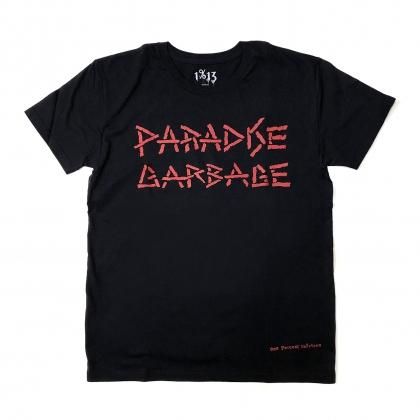 ロゴはKings Road 430にあった "Paradise Garage" の表看板とハードコアパンク特有のコピー文字、骨文字、石文字が大胆にクロッシングされています。