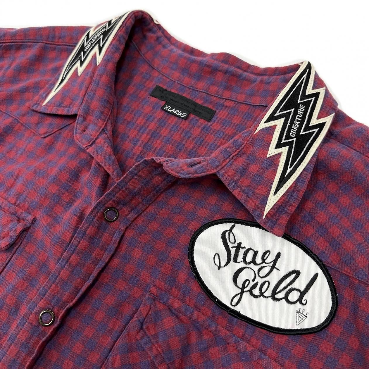 左胸には「STAY GOLD」ワッペン、襟には「THUNDER STOMP」ワッペンを縫製。